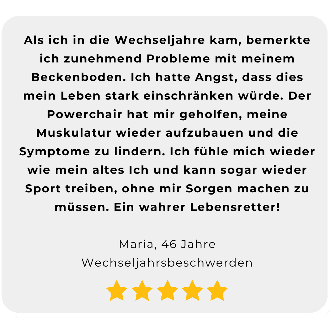 • KEINE Blasenschwäche und Rückenbeschwerden mehr.